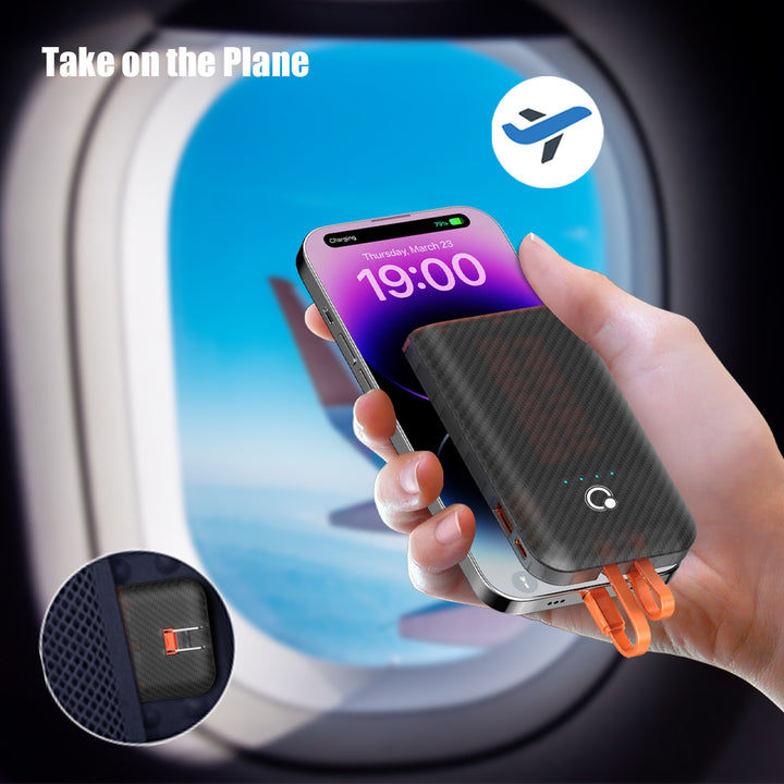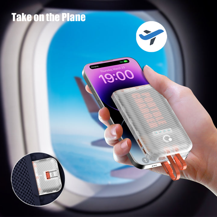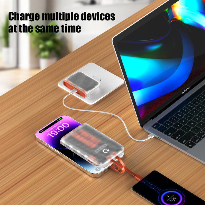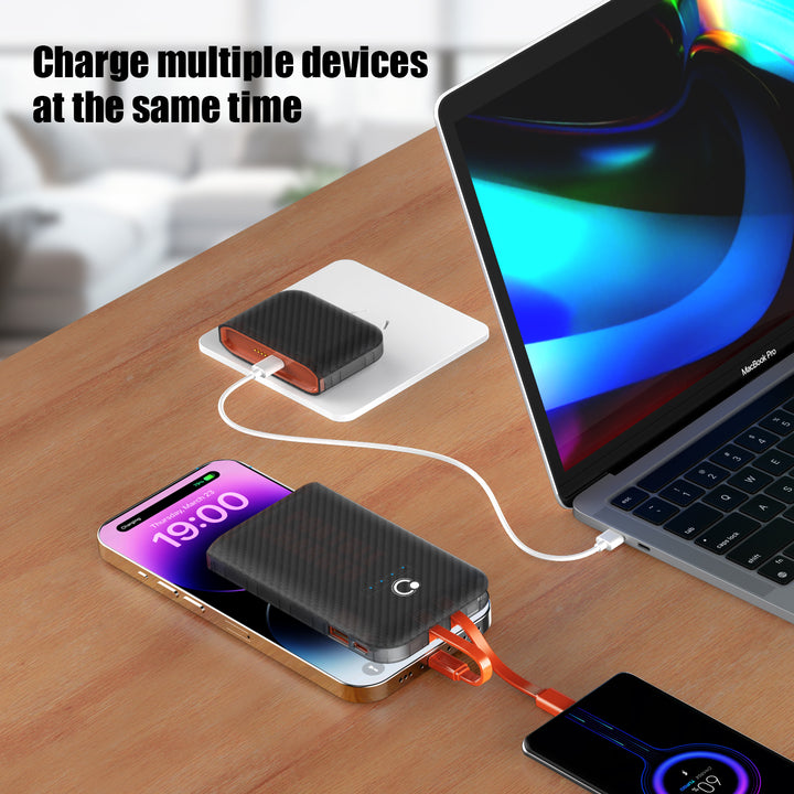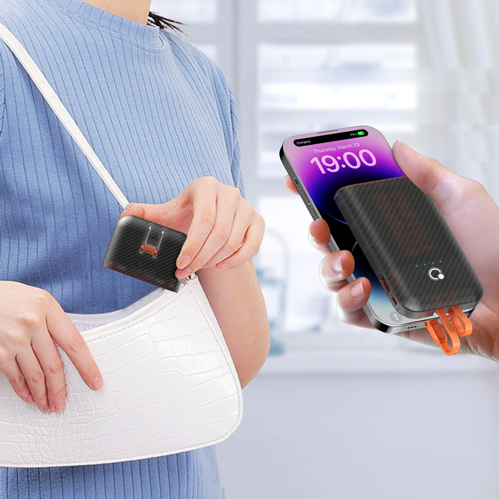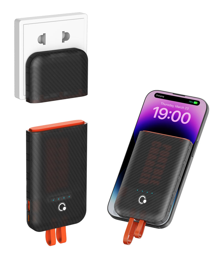 - Built-in Lightning & Type-C cables for Android & iOS devices.